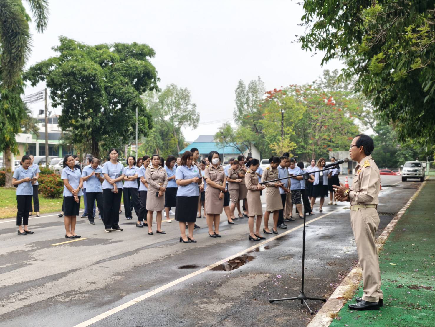 วันนี้ (27เมษายน 2569) นายแพทย์สุทัศน์ ไชยยศ ผู้อำนวยการศูนย์อนามัยที่ 10 อุบลราชธานี มอบหมายให้ นายนิพนธ์ กุลนิตย์ รองผู้อำนวยการศูนย์อนามัยที่ 10 อุบลราชานี(ด้านส่งเสริมสุขภาพ) นำคณะผู้บริหารและเจ้าหน้าที่เข้าแถวเคารพธงชาติ สวดมนต์ไหว้พระ พร้อมแสดงความสำนึกในพระมหากรุณาธิคุณและน้อมถวายความอาลัย แด่สมเด็จพระนางเจ้าสิริกิติ์ พระบรมราชินีนาถ พระบรมราชชนนีพันปีหลวง ด้วยการยืนสงบนิ่ง เป็นระยเวลา 93 วินาที ในกิจกรรม Morning Talk ครั้งที่ 422 พร้อมพบปะเจ้าหน้าที่ประจำสัปดาห์ พร้อมแจ้งเรื่องจากการร่วมเข้าร่วมการประชุมเชิงปฏิบัติการ “การติดตามและประเมินผลการดำเนินงานกรมอนามัย รอบ 6 เดือน” ประจำปีงบประมาณ พ.ศ. 2569 พร้อมเชิญชวนเจ้าหน้าที่ออกกำลังกาย เพื่อสุขภาพที่แข็งแรง จากนั้นคณะกรรมการNutrition แจ้งเรื่องผลการดำเนินการอบรมให้ความรู้และการตัววัดคุณภาพน้ำภายในหน่วยงาน