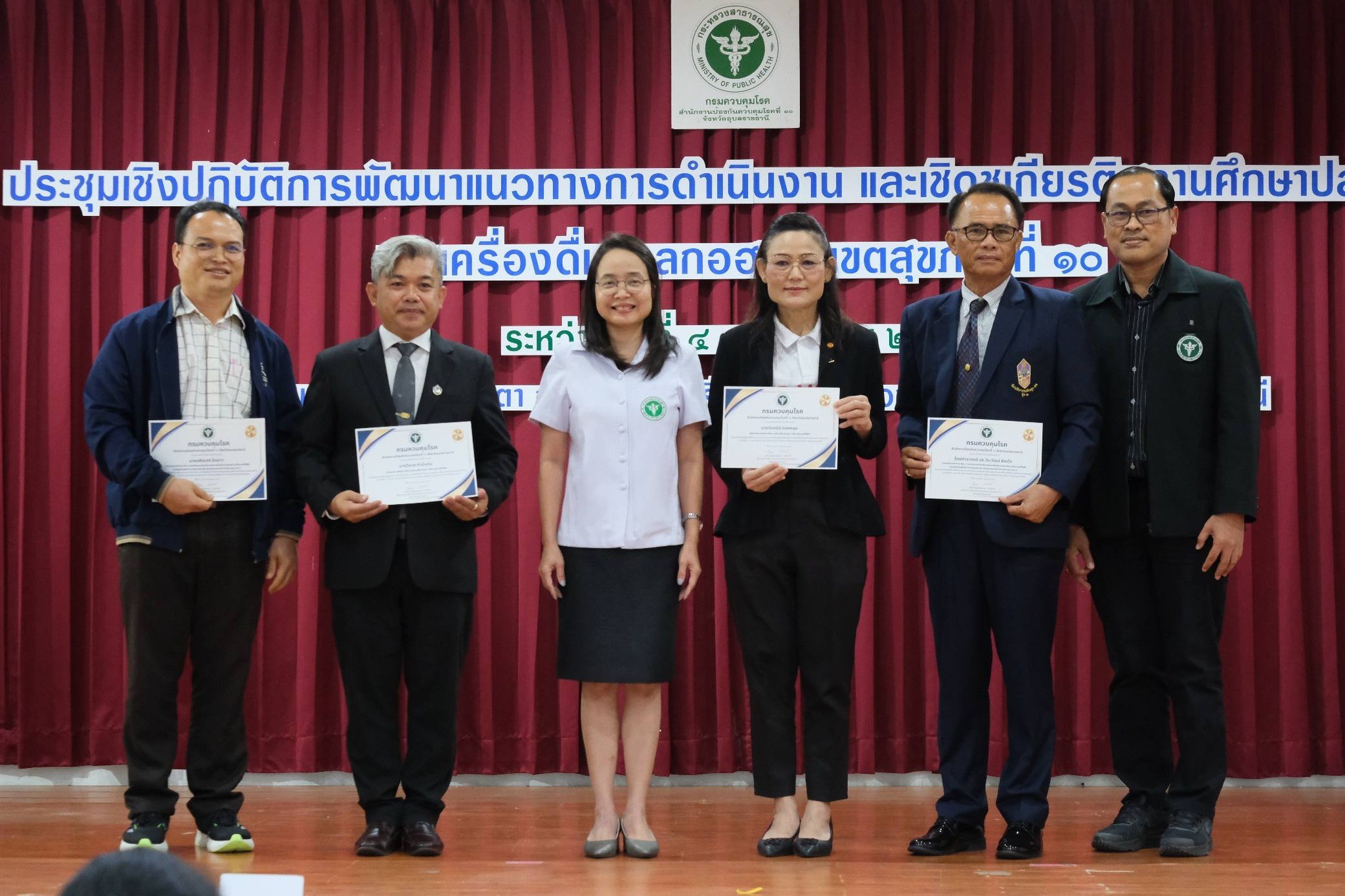 วันที่ 5 มีนาคม 2569 นายแพทย์สุทัศน์ ไชยยศ ผู้อำนวยการศูนย์อนามัยที่ 10 อุบลราชธานี มอบหมายให้ นายนิพนธ์ กุลนิตย์ รองผู้อำนวยการศูนย์อนามัยที่ 10 อุบลราชานี(ด้านส่งเสริมสุขภาพ) ร่วมเป็นเกียรติในพิธีเปิดการประชุมเชิงปฏิบัติการพัฒนาแนวทางการดำเนินงาน และเชิดชูเกียรติสถานศึกษาปลอดบุหรี่และเครื่องดื่มแอลกอฮอล์ เขตสุขภาพที่ 10 เพื่อพัฒนาแนวทางการดำเนินงานสถานศึกษาปลอดบุหรี่และเครื่องดื่มแอลกอฮอล์ พร้อมทั้งเชิดชูเกียรติสถานศึกษาที่ผ่านการประเมินเป็นสถานศึกษาปลอดบุหรี่และเครื่องดื่มแอลกอฮอล์ ประจำปี 2567–2568 ซึ่งมีสถานศึกษาที่ผ่านการประเมิน สำนักงานเขตพื้นที่การศึกษา โรงพยาบาล ศูนย์วิชาการ สำนักงานสาธารณสุขจังหวัด และเครือข่ายที่เกี่ยวข้อง เข้าร่วมประชุม จำนวน 80 คน ณ ห้องประชุม โรงแรมบ้านสวนคุณตา กอล์ฟ แอนด์ รีสอร์ท อำเภอวารินชำราบ จังหวัดอุบลราชธานี โดยมี แพทย์หญิงจินตนา คำภักดี ผู้อำนวยการสำนักงานป้องกันควบคุมโรคที่ 10 จังหวัดอุบลราชธานี เป็นประธาน