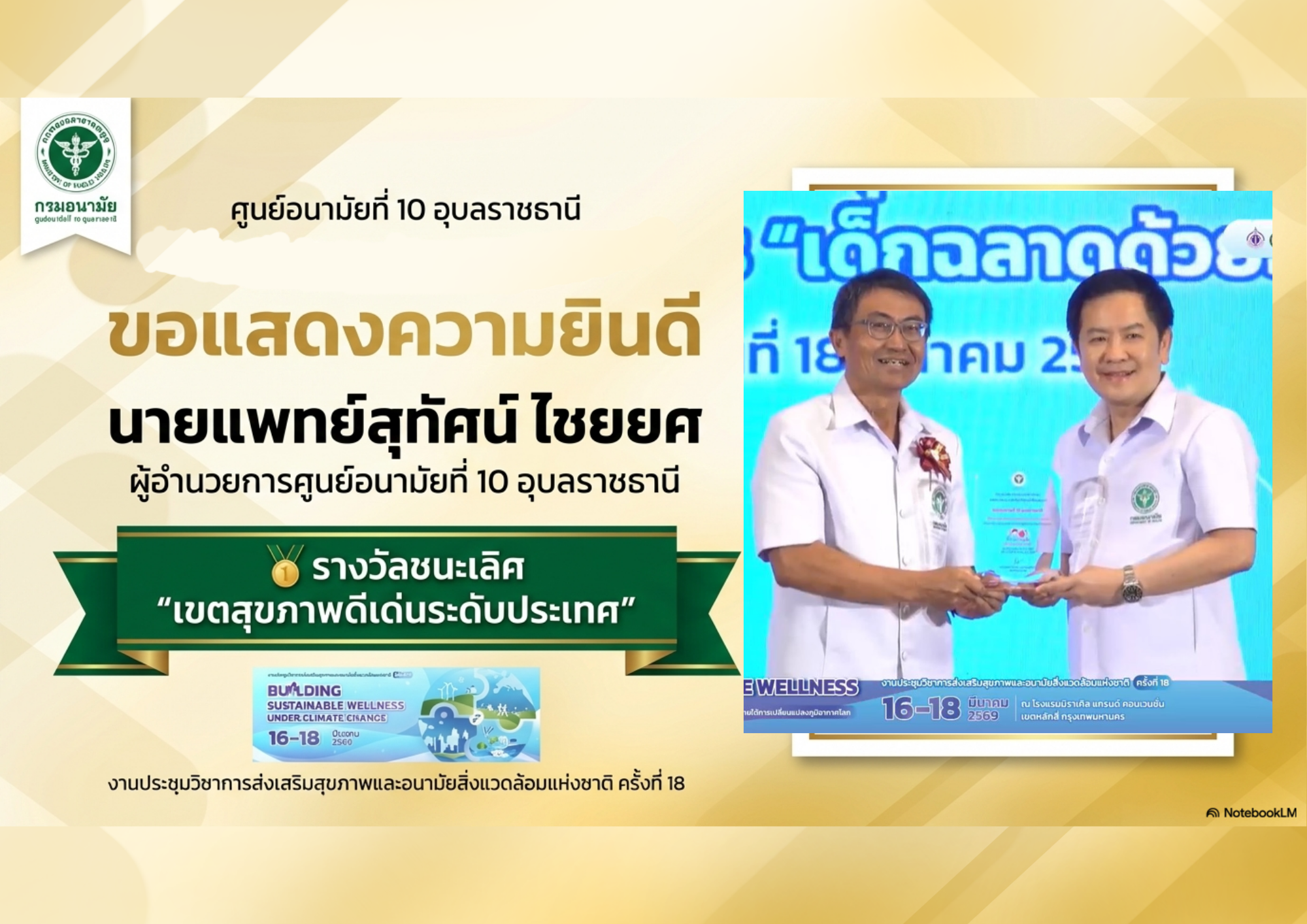- นายแพทย์สุทัศน์ ไชยยศ ผู้อำนวยการศูนย์อนามัยที่ 10 อุบลราชธานี ได้รับรางวัลชนะเลิศ “เขตสุขภาพดีเด่นระดับประเทศ”