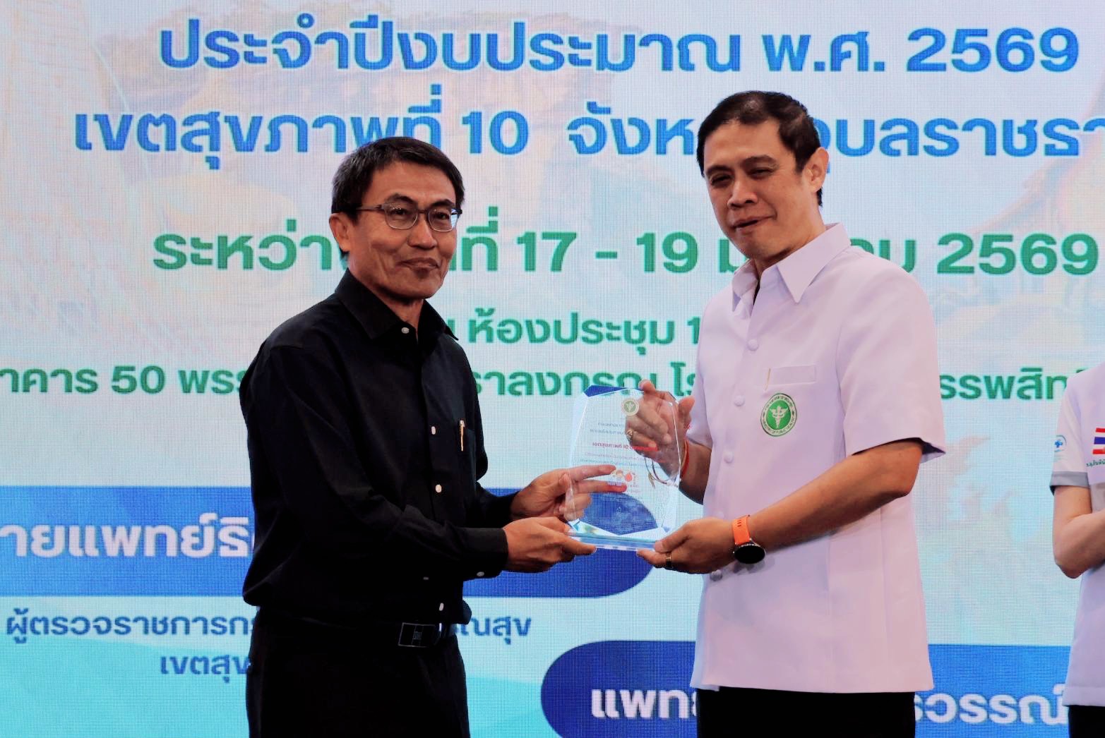 ทั้งนี้ก่อนเริ่มการประชุมฯ นายแพทย์สุทัศน์ ไชยยศ ผู้อำนวยการศูนย์อนามัยที่ 10 อุบลราชธานี ได้มอบโล่รางวัลชนะเลิศเขตสุขภาพดีเด่นระดับประเทศ ด้านการควบคุมและป้องกันภาวะโลหิตจางภายใต้โครงการ"เด็กฉลาดด้วยธาตุเหล็ก"ประจำปีงบประมาณ พ.ศ.2568 ให้กับเขตสุขถาพที่ 10 โดยมี นายแพทย์ธิติ แสวงธรรม ผู้ตรวจราชการกระทรวงสาธารณสุข เขตสุขภาพที่ 10 เป็นตัวแทนรับมอบฯ