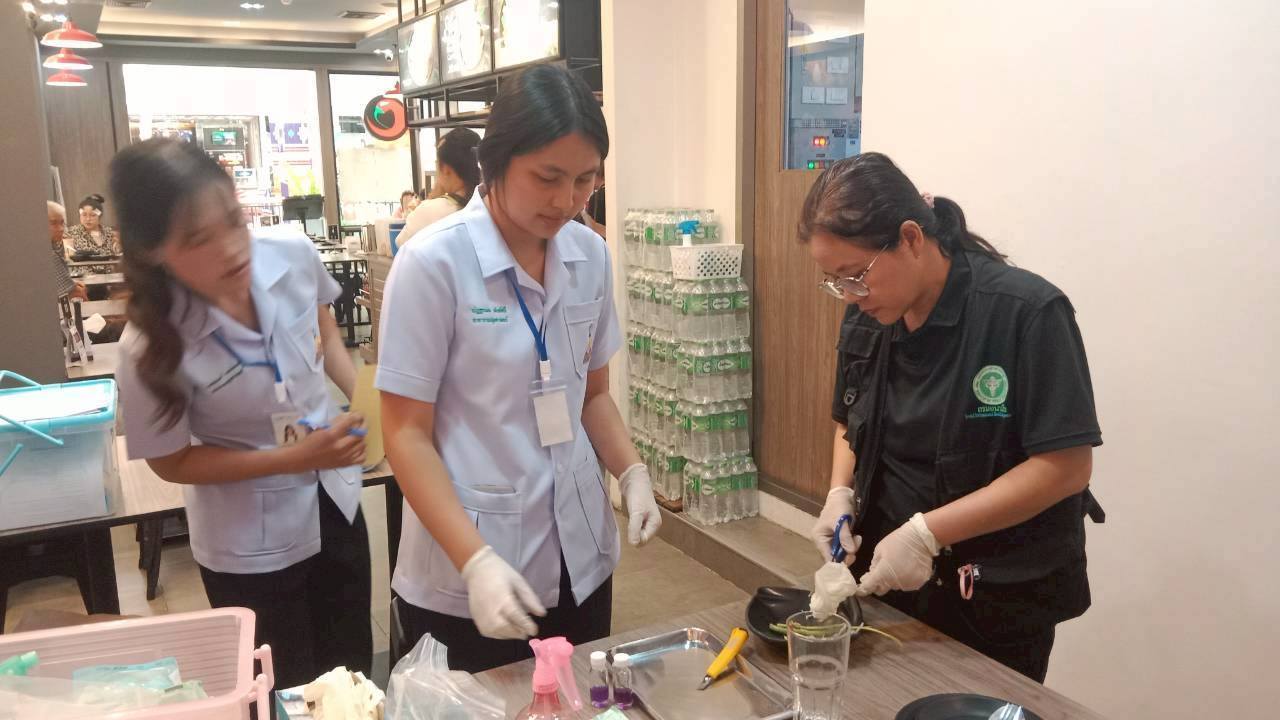 วันนี้( 9 เมษายน 2569) นายแพทย์สุทัศน์ ไชยยศ ผู้อำนวยการศูนย์อนามัยที่ 10 อุบลราชธานี มอบหมายให้เจ้าหน้าที่กลุ่ม สุขาภิบาล ศูนย์อนามัยที่ 10 อุบลราชธานี พร้อมด้วยนักศึกษาฝึกประสบการณ์ มหาวิทยาลัยอุบลราชธานี ร่วมลงพืันที่เฝ้าระวังด้านสุขาภิบาลอาหาร ร่วมกับเจ้าหน้าที่กองสาธารณสุขและสิ่งแวดล้อมเทศบาลเมืองแจระแม ในการเฝ้าระวังด้านสุขาภิบาลอาหารได้แก่ การตรวจสุขลักษณะทางกายภาพและการเก็บตัวอย่างตรวจเชื้อโคลิฟอร์มแบคทีเรีย ตามมาตรฐานสุขาภิบาลอาหาร SAN/SAN Plus ร้านก๋วยเตี๋ยวมิตรสัมพันธ์