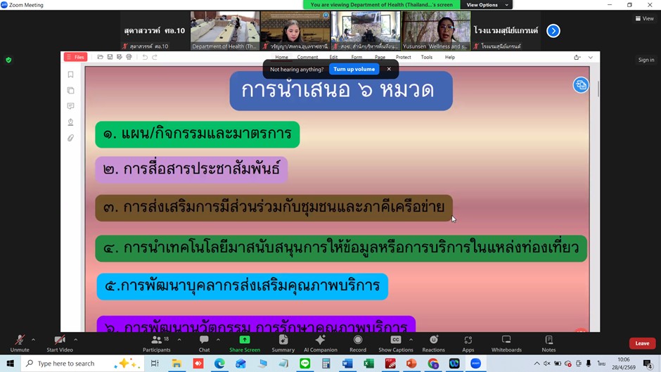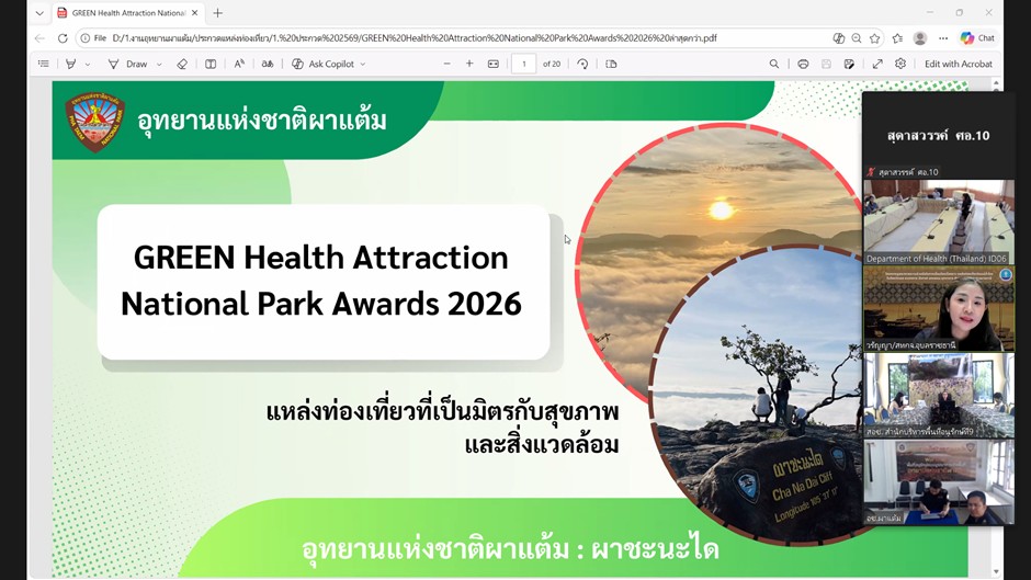 วันนี้ (28 เมษายน 2569) นายแพทย์สุทัศน์ ไชยยศ ผู้อำนวยการศูนย์อนามัยที่ 10 อุบลราชธานี มอบหมายให้ นางศุภลักษณ์ ธนธรรมสถิต รองผู้อำนวยการศูนย์อนามัยที่ 10 อุบลราชธานี(ด้านอนามัยสิ่งแวดล้อม) เป็นประธานในการประชุมคัดเลือกรางวัลโรงแรมและแหล่งท่องเที่ยวที่เป็นมิตรกับสุขภาพและสิ่งแวดล้อม ประจำปี 2569 (GREEN Health Hotel and GREEN Health Attraction Quality Award 2026) เพื่อคัดเลือกโรงแรมและแหล่งท่องเที่ยว อุทยานแห่งชาติที่เป็นมิตรกับสุขภาพเข้ารับการคัดเลือกระดับประเทศ โดยมีคณะกรรมการประกอบด้วย ศูนย์อนามัยที่ 10 อุบลราชธานี สำนักงานการท่องเที่ยวและกีฬา จังหวัดอุบลราชธานี และสำนักบริหารพื้นที่อนุรักษ์ที่ 9 (อุบลราชธานี) ณ ห้องประชุมบุษราคัม ศูนย์อนามัยที่ 10 อุบลราชธานี และผ่านระบบ Video Conference